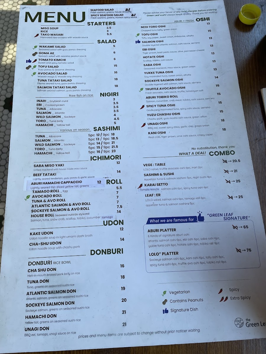 Welcome to Green Leaf Sushi, an intimate haven for sushi lovers nestled in the heart of North Vancouver. Located at 117 W 1st St, North Vancouver, BC V7M 0E5, this Japanese restaurant offers a delightful culinary experience that transports your senses straight to Japan. With a reputation for quality and creativity, Green Leaf Sushi is a must-visit for both locals and visitors eager to indulge in some of the best sushi the region has to offer.