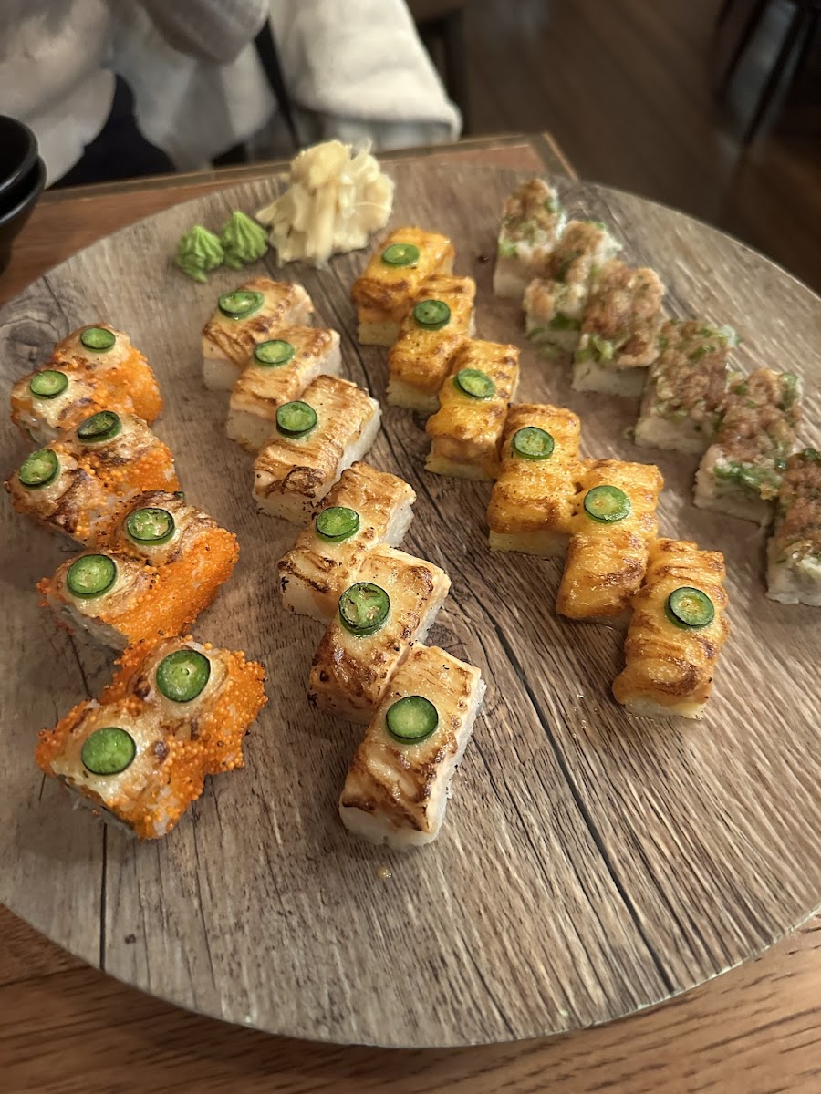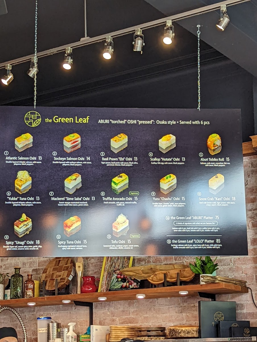 The menu features standout dishes that showcase the artistry of sushi-making. The Aburi Oshi selection, particularly the Double Layer "Chashu" Pork and Wild Sockeye Salmon versions, is a must-try at CA$18.00 and CA$16.00, respectively. The unique preparation and flavors—paired with yuzu jalapeno and oshi sauce—create an unforgettable burst of taste that melts effortlessly in your mouth. Customers rave about the Aburi Tobiko Roll (CA$18.00), which combines fresh crab meat, perfectly ripe cucumber, and a drizzle of oshi sauce, elevating the sushi experience even further.